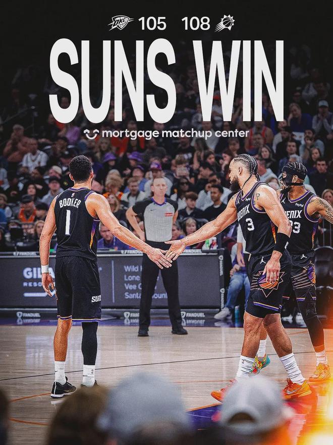 面對卡魯索的貼身防守與多爾特的協防壓迫,布克沒有選擇突破,也沒有傳球。他冷靜撤步、果斷出手,三分球空心入網——伯納烏式的寂靜在雷霆替補席蔓延,而太陽主場瞬間沸騰。