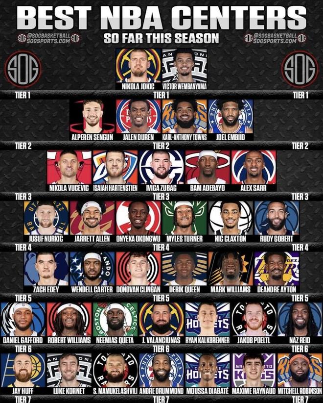 這份分檔揭示了一個現實:現代NBA中鋒價值早已超越籃板與護筐。頂級中鋒是戰術核心,是進攻發起點,也是防守基石。